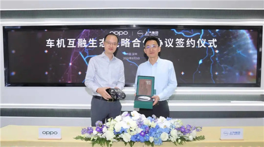 8月5日,上汽集团和OPPO正式签署了战略合作框架协议,双方将充分发挥各自在智能汽车和智能终端设备领域的领先优势,联合探索在SOA应用服务、生态域融合、车机互联等领域的研究和应用。