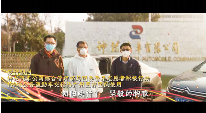 4月7日,由神龙公司、东风雪铁龙品牌七名员工参与远程协作唱响和录制的公益歌曲《武汉,因你不同》MV全网上线,神龙公司、东风雪铁龙品牌员工向抗击新冠肺炎疫情中的平凡的英雄致以崇高的敬意。《武汉,因你不同》公益歌曲,由东风雪铁龙爱心支持创作与录制,由吴瑜作词、洛兵作曲,文体明星春妮、何静、纪海星、缪杰、周艳泓、王凯、杨凌、王丽萍、林妙可、洛兵等10人联袂录制,并于4月2日全网首发。
