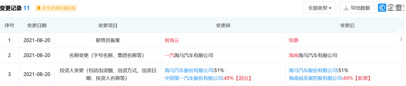一汽海马企业信息变更情况,图片来源:企查查