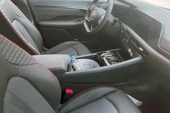 从谍照来看,新车内饰造型与索纳塔保持高度一致,全液晶仪表与中控屏组成双联屏设计,并且配备了现代家族标志性的四辐式方向盘。此外,在门板、座椅以及中央扶手区域还采用了红色缝线装饰,搭配全黑内饰颜色,视觉效果较为运动。