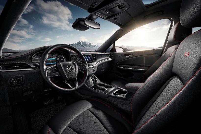 走进车内,同样可以感受到全新别克威朗GS的独特魅力。贯穿中控面板的碳纤维纹理饰板与精致的红色双缝线相得益彰;腿部以上大面积采用触感舒适的软包覆材质;全黑麂皮绒面运动座椅酷感十足,镶嵌醒目的GS徽标,配合精致缝线点缀,在动静之间彰显运动潜力。